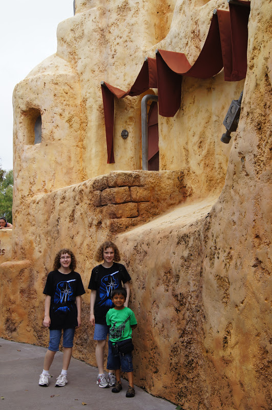 My sister, brother and I in front of the Tatooine Traders. For some reason, the whole Tatooine thing looked off.